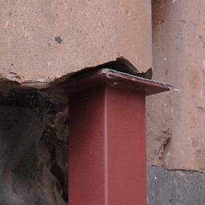 9. 10. 11. Steel columns have been inserted at ludicrous locations inside the Cathedral. They have been added to piers that are structurally sound and "support" stones that are in no risk of falling - stones that are still firmly embedded into adjoining masonry.