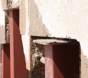 1. & 2. Steel columns on the outside and inside of the Church of the Abughamrents.