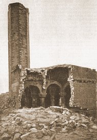 Two inscriptions have been found upon this pile. One in Persian bears the date Heg. 595 or A.D. 1198-99, and is to the effect that one Kei-Sultan of the Beni-Cheddad family "forbids the sale of sheep and camels in front of this mosque of Abul-l-Mamran." The other is in Armenian and without date or personal sanction, being a mere exhortation to obey the order. One must suppose, in the absence of evidence to the contrary, that the minaret belonged to a mosque which has disappeared. [footnote 10]