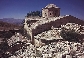 This small church stands on a ridge to the south of the main enclosure. It is a rectangular, single nave chapel that has a barrel vault internally, a saddle roof externally. The church is built of re-used masonry, and there are old sculptural and inscriptional fragments built into its walls.