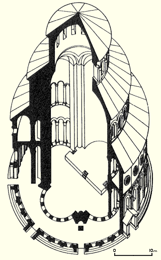 Yapı, hiçbir zaman sağlam değilmiş ve 1013 yılında, her apsisin orta iki sütununa epey bir miktar taş işçiliğinin ilave edilmesiyle bunların payandaya çevrilmesi dahil, takviye yapılması gerekmiştir. Bu sağlamlaştırma çalışmaları başarısız olup, kilisenin kısa bir süre sonra çökmesiyle sonuçlanmıştır.
