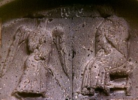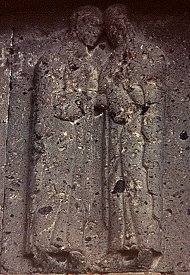 KabartmalarApsise en yakın iki kemerde figüratif yarım kabartmalar vardır. Bunlar, Hazreti Meryem'in hayatından iki sahne içerir: Annunciation (Cebrail vasıtasıyla Hazreti Meryem'e ulaştırılan haber) ve de Visitation. Sahneler alışılagelmiş biçimde gösterilmiştir, ancak şahısların hiçbirinin halesi yoktur. Annunciation, meleklerden Cebrail'in Hz. Meryem'e Tanrı'nın vücudunu taşıdığını müjdelediği sahnedir: "Ey Tanrı'nın lütfuna erişen kız, selam! Rab seninledir" ("Hail thou that art favoured, the Lord is with Thee"; Luka 1:28). Visitation ise Annunciation'dan kısa süre sonra yer alır. Meryem, kendisi gibi gebe ve mucizevi bir şekilde Vaftizci Yahya'yı taşıyan kuzeni Elizabet'e gider. Birbirini kucaklarlar ve "Elizabet Meryem'in selamını duyunca rahmindeki çocuk hopladı. Elizabet Kutsal Ruh'la doldu" ("When Elizabeth heard the salutation of Mary, the babe leapt in her womb; and Elizabeth was filled with the Holy Ghost"; Luka 1:41).
