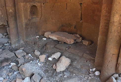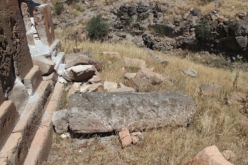 Amongst the rubble on the floor is a fragment of a khachkar and a stone slab with one half of a rectangular slot hole: it is tempting to think they were once part of the same monument, and that it was perhaps set up inside the church.