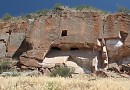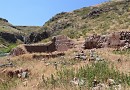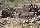 At the top of the track that accesses the gorge from the north, at the edge of the plateau, are the overgrown ruins of two clusters of rectangular chambers built of fieldstones. They were perhaps associated with the monastery.