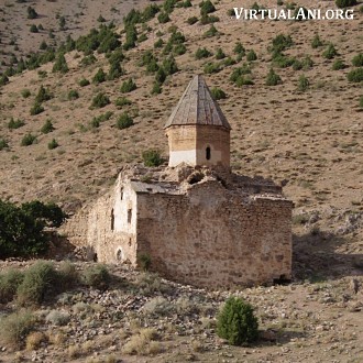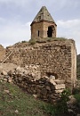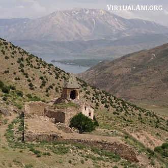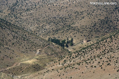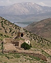 1. The large village of Göründü is located in the Gevaş district of Van province and lies 3km off the main Van to Tatvan road. From the village, a road follows the shoreline of lake Van - about 6km beyond Göründü the base of the valley containing Karmrakvank is reached. It is possible to drive up this valley as far as a watering place for sheep (the water piped away from the monastery's spring emerges here). From this point there is a 40 minute hike up to the monastery.