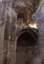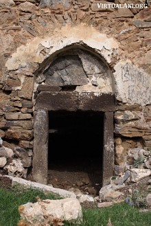 The entrance into the north church is through its west wall. However, this doorway is now blocked-up and a new entrance has been roughly hacked through the south wall, leading directly into the south church. Thierry saw significance in this opening, proposing that it dated back to the building of the south church and indicated that the north church was older than the south church. I believe it has no significance: the opening only dates from after the monastery's abandonment and is just a crude breaking-through of the wall to enable the interiors of both churches to be used as a single sheep-fold. The north church is almost certainly younger than the south church because the vault of the north church is supported mostly by the north wall of south church.