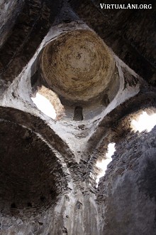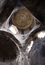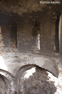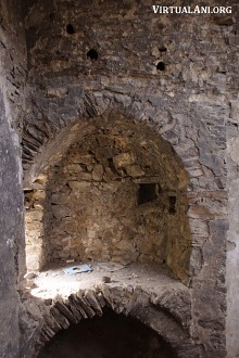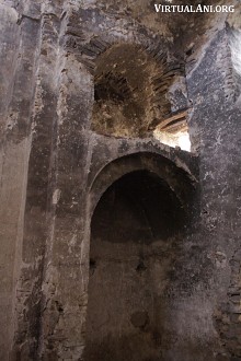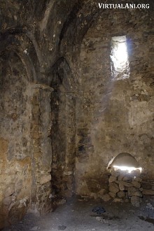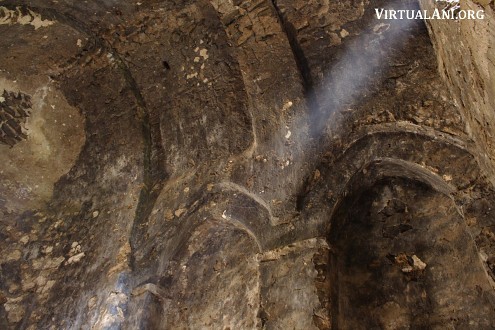 The apse of the church is horseshoe-shaped. Its domical vault has a row of clay jars set into its base to enhance the acoustics inside the church. There are more clay jars set into the barrel vault of the west arm of the church. On the south side of the apse is a small, windowless chamber that is too small to be a side chapel but may have been a storage area.