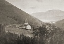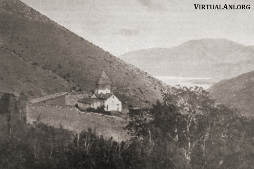 The monastery is located at the upper end of a small valley that descends to the shore of Lake Van [note 1].