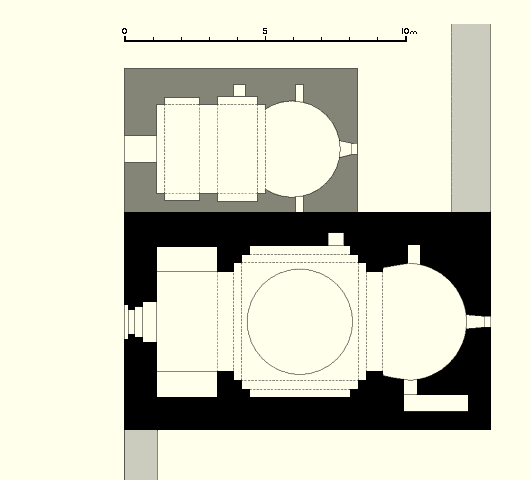 The internal dimensions of the church are 11 metres by 5.4 metres. The dome is 13.25 metres above the current floor level, but a layer of at least 1 metre of earth and debris covers the original floor level.