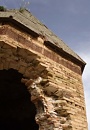 A major earthquake hit the Van region in 1648, destroying numerous churches and requiring their rebuilding. A design feature of these post-1648 churches is the method of transition between the pitched roof of the nave and the vertical surface of the drum: this is often accomplished using a flat, triangular-shaped plane set at 45-degrees (see photo 8 on the Surp Grigor page for an example). This design solution was probably inspired by Muslim kumbets, and is not a form found on earlier Armenian churches. However, at Karmrakvank the traditional solution is still used: a cube with a double-pitched roof (see photo 11 on the Kizilkilise page for an example). This seems to indicate that the church, including its brick dome, was not built after 1648 [note 5].