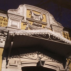 ![]() ![]() Ordu Caddesi'nde bir evin süslü çatı pervazı. |