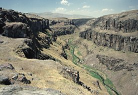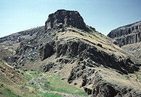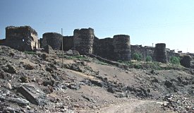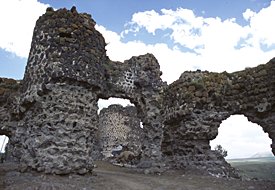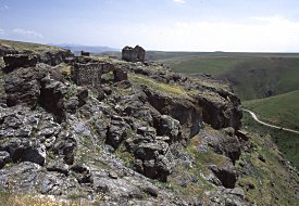 The physical appearance of the site is similar to that of Ani. Like Ani, it occupies a roughly triangular plateau between the near vertical sides of converging ravines, and has a very strong defensive wall, with u-shaped towers, that bars the only easily approachable side.