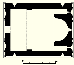 The church is a small structure; rectangular in plan, with a single-nave flanked by rectangular corner chambers. The roof has fallen, but enough remains to indicate that it had a barrel vault reinforced by a single rib-arch. The entrance was in the west façade. The internal floor level would have been at least a metre above the ground level - perhaps there was once a staircase up to the entrance. The interior was lit by a window in the apse and another in the west wall, above the entrance. The church had a lower level in the form of a vaulted crypt.