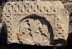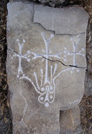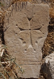 To the east and the northeast of the enclosure wall are the remains of a graveyard. Treasure hunters have disturbed most of the graves. The surviving gravestones all have very simple designs, without inscriptions. There are several more simple gravestones lying in area "I" at the northern end of the enclosure, but they are probably not in their original location. On my first visit to the monastery I noticed a fragment of an ornate khatchkar (see photograph 20) lying near the southwestern end of the enclosure wall. Treasure hunters had probably dug it up. A year later it had vanished. At a short distance to the south-west of the monastery, underneath some small trees, there is a spring. The water is now carried away via a pipe to Gelberhasan village but drinking water can still be obtained from it by lifting the slab that covers the start of the pipe. West of this, but much further away from the monastery, is a small, ruined, single-nave chapel. It is probably the structure that was known as the tomb of St. Marinos.