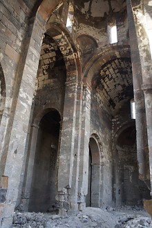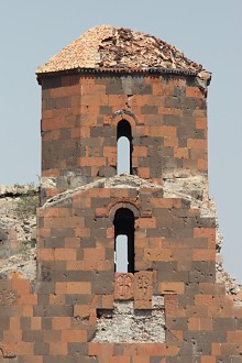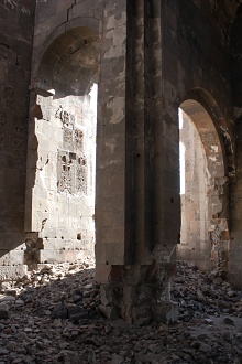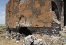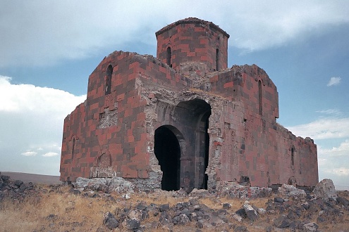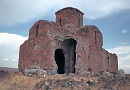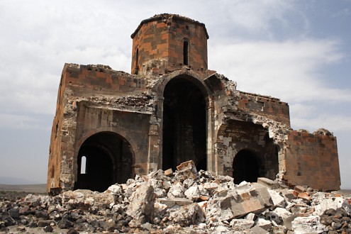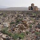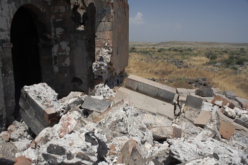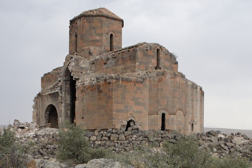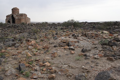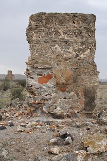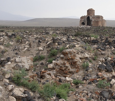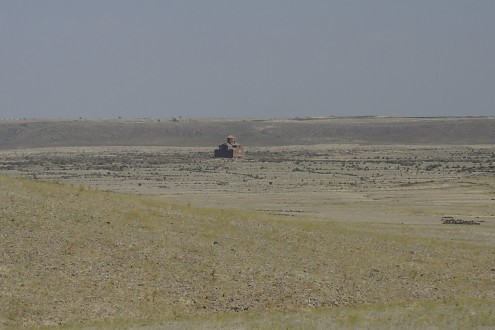 About 34km south of Ani the rivers Arpa/Akhurian and Digor join. Just before that point the rivers flow through deep canyons between a flat, grassy plateau. On this plateau there was once a settlement known as Mren. Originally a small town, the site is now uninhabited and the only surviving upright structure is an imposing Armenian church whose lonely silhouette is visible many miles away.