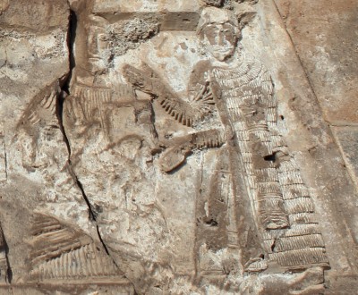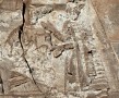 The relief carving on the lintel is smaller in scale and simpler in detail than that on the west portal, and it is also damaged and worn in parts.
