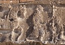 On the lintel is a row of six male human figures rendered in bas-relief.