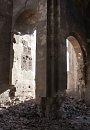 Most of the south side of the church fell in late January or early February 2008. This collapse was not unexpected: the base of the south facade had been undermined along its entire length and there was almost nothing supporting its weight. The west and north facades are similarly undermined and are now in a state of near collapse, the lintels over the west and north entrances have split, and there is a severe crack all the way up the northwest corner of the church (see photographs 18 and 19) that extends across to the gable of the north arm. Some of the damage since 1920 seems to have been sabotage intended to weaken the structure in order to "encourage" the church's "natural" collapse [note 7].