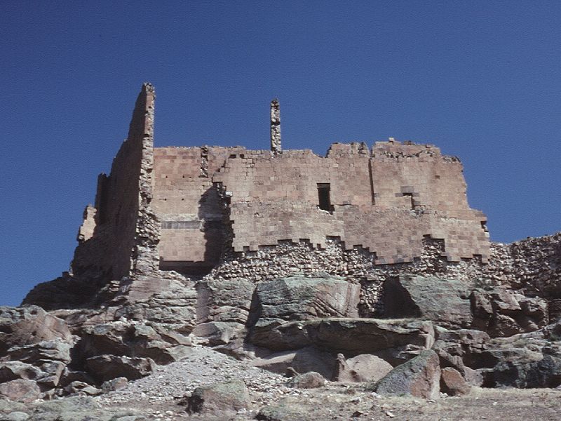 This is a large structure at the extreme north-western corner of Ani.It probably dates from the late 12th or the 13th century, and may have been the residence of a wealthy merchant, or a prince, or the bishop of Ani. It has been proposed that it was the palace of the merchant Tigran Honents, since his supposed tomb is hollowed out of the cliff in the valley opposite the palace. Another theory is that it was a military structure - perhaps a barracks - connected to the outer defences of the city. There are no surviving inscriptions to help establish its function or identify who the real owner was.