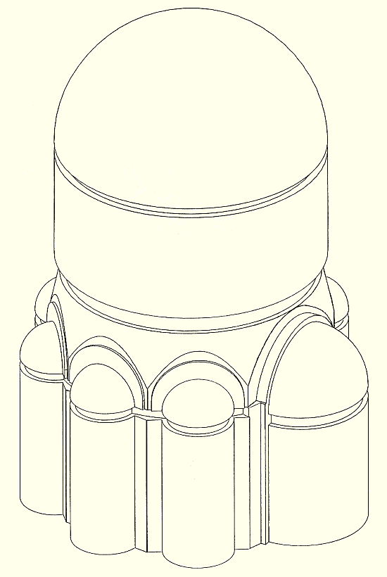 Bu görüntüler, Halaskar Kilisesi'nin iç geometrisini gösteren bilgisayarda çizilmiş üç boyutlu modelidir. 1980'lerin sonlarında, "solid modelling software" halen çok ilkelken çizilmiştir. Modelin basit geometrik şekillerden yapılması gerekmiştir - küreler, silindirler ve küpler. Yakın sureti halen yaratılabilir; bu da, kilisenin geometrik saflığına işarettir.
