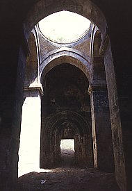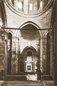 Against the north wall of the zhamatun is another chapel, (6), the church of the Holy Cross. It was built (or rebuilt) in 1817, and served for a while as the monastery library. Built against the south wall of the zhamatun is a barrel vaulted room, (7), built in 1849. Although it is not particularly church-like, it was known as the church of St. Sion.