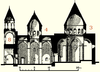 It has a plan that is sometimes called a "St. Hrip'sime type", named after the 7th century church of St. Hrip'sime at Etchmiadzin, the first dated example of this sort of plan. It is also known as a "four-apse, four-niche" plan. Its characteristic feature are the four, nearly circular, "niches" that are set into the masonry between the apses and the corner rooms.