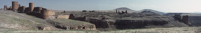 Ani, doğa ile iyi korunmuştur. İki taraftan dik uçurumlarla korunan üçgen platonun üzerindedir. Süreklilik arz eden düzgün yer şekli, sadece kuzey mahallinde vardır.