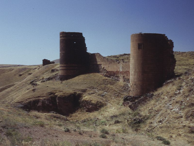 Süslü panosuyla birlikte kapı, 10uncu yüzyıl eseridir, ama burçlar Şeddatlı döneminde (1164-99) onarılmıştır. Hıdrellez Kapısı'ndan doğuda, siper güneydoğuya yönelir. Bu dönüm noktasında, surların başka yerlerinde kullanılmış yarım daire olan diğer burçlarla tez düşen birkaç adet alçak dikdörtgen kule vardır. Bu noktadan ötede, duvar tek sıra istihkam dizisi olur. Bir dizi görkemli ve çok iyi korunmuş burç ile bu, halen etkileyicidir. Bu kulelerden sonra, surlardan geriye pek birşey kalmamıştır. İstisna, Tigran Honents Kilisesi'nin yakınında ve Arpaçay'a nazır göze çarpan bir kısımdır. Bu son kısımdan sonra surların, sadece yer yer belirli kısımları kalmıştır. Tsağkotsadzor (Alaca) vadisinde olduğu gibi, bu da muhtemelen iç kalede bitiyordu.